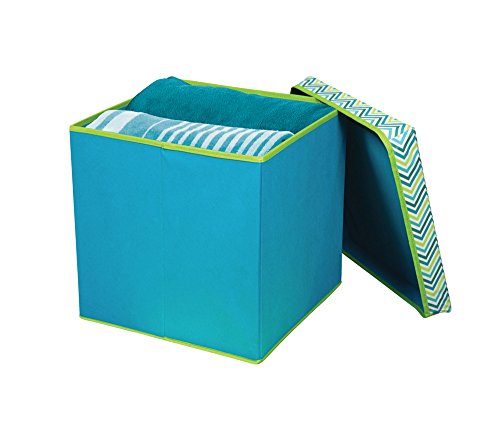 -. Feature : Collapsible design, folds flat when not in use. Material: Nonwoven Fabric. / Padded lid for added comfort. Maximum Weight Capacity 150lbs. / Provides extra storage and seating for home, office or college dorm / Dimensions: 15.74"D x15.74"W x15.74 "H , Weight: 6.4 lbs. / Color: Cyan Blue/green. Country of Origin: China.