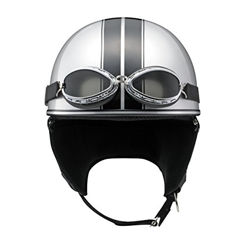 원본상품명: ヤマハ(YAMAHA) バイクヘルメット 半帽 Y-555 クラシック ゴ?グル付 FREE(57-59cm) シルバ?&ストライプ Q7C-MRK-Y05-F29