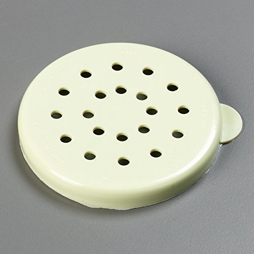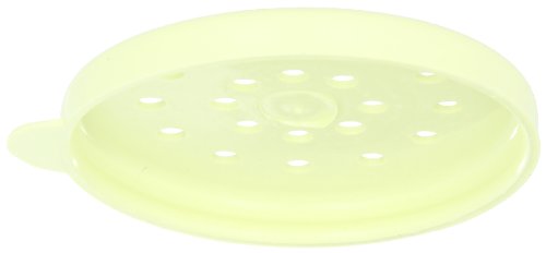 This Carlisle 426104 yellow lid is 3.12" in diameter and fits Carlisle 4260 shaker and dredge for cheese or other dry toppings (sold separately). It is made of polyethylene for durability, and resistance to cracking. This lid has large .18" holes for dispensing contents without clogging and is microwave and dishwasher-safe.