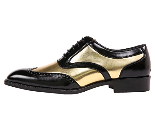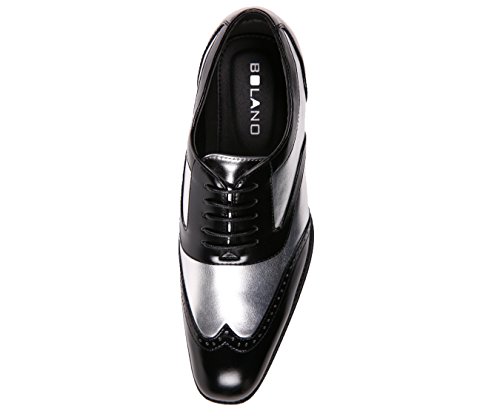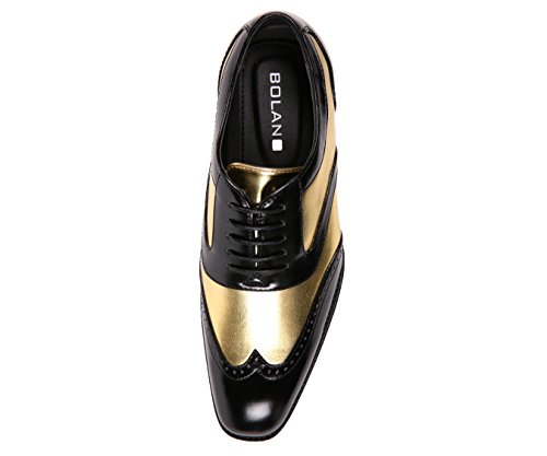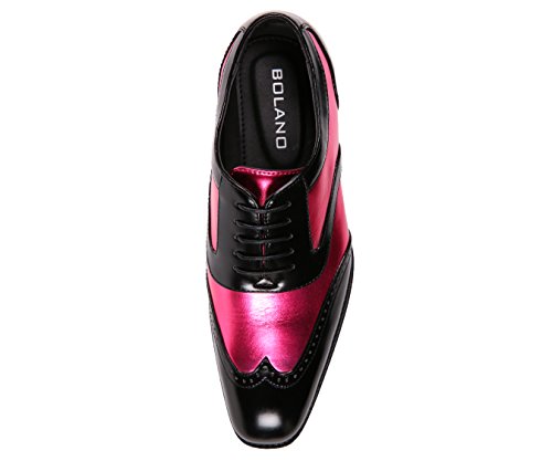 Binding : Apparel Product Description There's a reason why the Oxford dress shoe is a classic. The fine broguing on the cap toe and vintage-inspired lace-up silhouette is both fashionable and functional, making these classic wingtip dress shoes a go-to option for the style-conscious gentleman. The Bolano men's wingtip shoes feature a fashion-forward mix of retro glam and modern style with their high-gloss sheen in bright, eye-catching colors. Make your look really pop when you brighten up a basic black and brown wardrobe with wingtip dress shoes in non-traditional shades, a playful finishing touch to any formal outfit. These streamlined kicks are a sophisticated choice for special occasions when you need to look your best. The two-toned design provides a striking contrast with sleek black panels and an ultra-luxe metallic luster that gives your outfit a hint of sparkle. Offered in a variety of delicious candy-coated flavors, the Lawson style shoe is the perfect canvas for personal expression. Liven up a sleek designer suit in lively hues that stand out against elegant black panels with fine stitching on the cap toe. Their elegant shape fits true-to-size, including slender curves for comfortable arch support in all the right places. Designed for comfort and style, take this lace-up Oxford dress shoe straight out of the box and onto the dance floor without having to break them in. Step out in style when you lace up a pair of distinctive Bolano Oxford dress shoes. This retro style dress shoe is a versatile option for a variety of looks, from dressing up a basic jeans and dress shirt uniform to adding the finishing touch to a slick power suit. Make a statement with shimmery metallic accents on the body of the shoe, a modern take on a quintessential style. 0