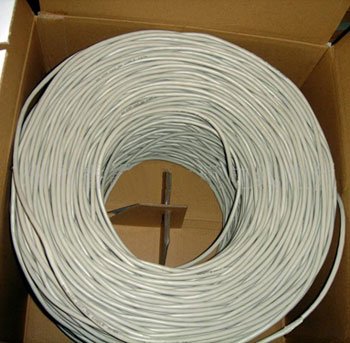 -. Feature : 1000 feet (305m)Cat 5e UTP cable in pull box / White PVC jacket / 4 Unshielded pairs of 24 AWG solid bare copper conductors / Rated to 350MHz / Excellent signal to noise ratio