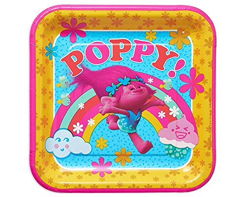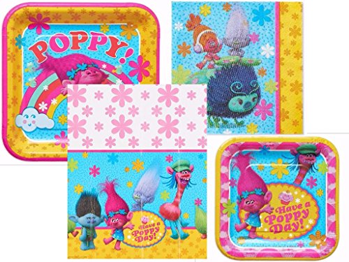 Dreamworks Trolls Birthday Party Bundle including Dinner Plates, Dessert Plates, Napkins and Tablecover for 16