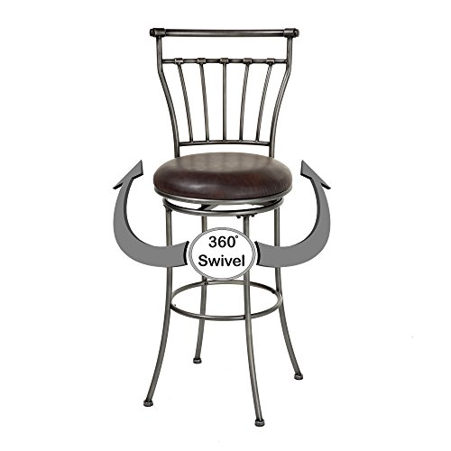 -. Brand : Fashion Bed Group -. Color : Silver -. EAN : 0094325249039 -. Feature : Circular swivel-seat has a rotating range of 360°; 30" seat height designed for 40" to 45" bar counters / Steel construction paired with Striated Silver finished frame and Coffee faux leather upholstery / Long, clean lines are the defining feature of this piece / Measures 18" (L) x 19" (W) x 45" (H) with a 17" diameter seat and 12.5" footrest height / 2-Pack includes 1-year limited warranty against manufacturing defects -. Label : Fashion Bed Group -. Manufacturer : Fashion Bed Group -. Model : C1M0202 -. MPN : C1M0202 -. PackageQuantity : 1 -. PartNumber : C1M0202 -. ProductGroup : Furniture -. ProductTypeName : HOME_FURNITURE_AND_DECOR -. Publisher : Fashion Bed Group -. Size : 30" -. Studio : Fashion Bed Group -. Title : Fashion Bed Group Topeka Metal Barstool with Coffee Upholstered Swivel-Seat and Striated Silver Frame Finish (2 Pack), 30" -. UPC : 094325249039 -. Warranty : 1-year limited warranty against manufacturing defects