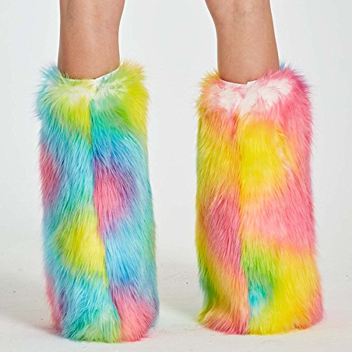 -. Feature : Made of high quality furry faux fur,white soft fleece lining / Material:70% Acrylic,30% Polyester Fit for all festivals, raves, parties, EDC,EDM etcc. / Spandex elastic cuffs can stay the fluffies and not be drawdown / This new tie dye rainbow color can match all outfits,stop the eyes when you wear it. / One free size fits all legs
