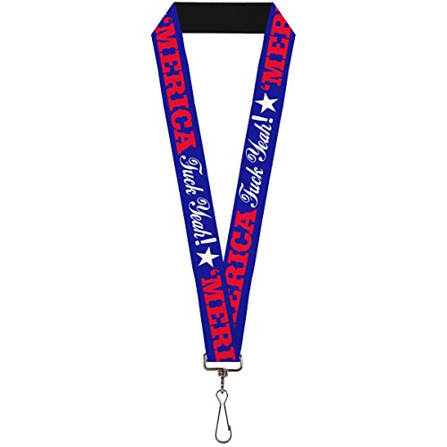 -. Binding : Apparel -. Brand : Buckle Down -. Department : unisex-adult -. Feature : This lanyard is made out of stretchy nylon, and has a stainless steel clip to easily detach your keys / Show off your favorite style / The lanyard is 1.0 inches wide, and a standard length -. Label : Buckle-Down -. Manufacturer : Buckle-Down -. PackageQuantity : 1 -. ProductGroup : Apparel -. ProductTypeName : ACCESSORY -. Publisher : Buckle-Down -. Studio : Buckle-Down -. Title : Buckle-Down Lanyard - 1.0" - Merica Fuck Yeah!/star Blue/red/white Accessory