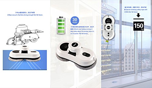 3.About safety: 2.8Kpa vacuum chamber,strong enough.Not fall down. 650ma inner batter to keep it stay safety about 30 minutes when it's out of power.Not fall down. Special climbing safety rope with 150KG. Not fall down.