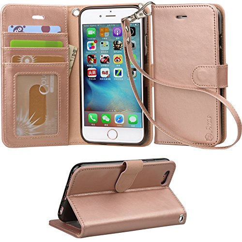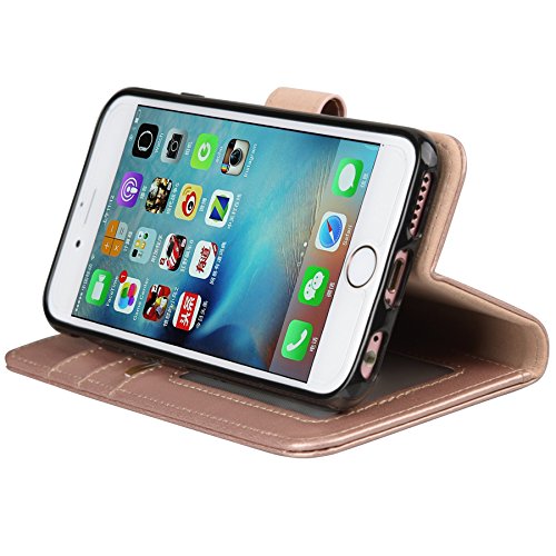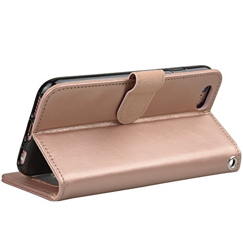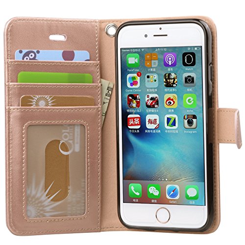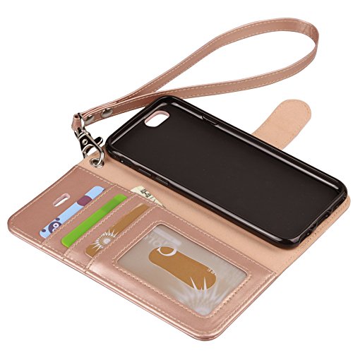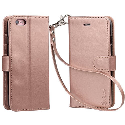 Arae PU Leather Flip Folio Kickstand Wallet Case with Card Slots for iPhone 6 / 6S - Rose Gold