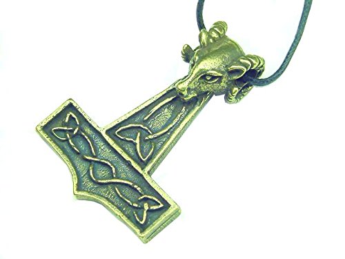 -. Title : Thor's Hammer Rams Head Necklace Pewter with Bronze Patina Pendant Viking Norse Mjollnir Pagan Wicca