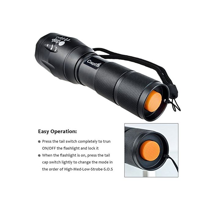CrazyFire 회중전등 줌식5모드 E17 1000LM CREE XM-L T6LED 단4 18650대응