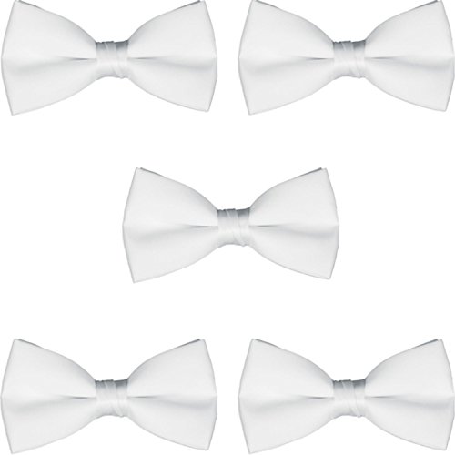 -. Feature : BUY IN BULK AND SAVE. Costing less than you'd spend purchasing each tie individually, this set of five bow ties is nothing short of a great bargain. / THE LOOK AND FEEL SILK. Made from a high quality poly/satin material, each 2" standard-style bow tie is a fantastic complement to any shirt, and emanates the elegance and specialness of formal fashion without bearing the P.R.Ice tag of pure silk. / A COLOR FOR EVERY OCCASION. Whether your event calls for a refined, mature look or is open to a look that's alight with personality, there's a colorful bow tie set here to suit your needs. Can be worn with any tuxedo shirt or dress shirt. / PRE-TIED WITH ADJUSTABLE SIZING. There's no reason to worry about tying the perfect knot, or getting the sizing just right; these bow ties come pre-tied for a finished look and further feature an adjustable strap, making it easy to establish the best possible fit. Made for adults, these formal satin bow ties adjust to fit up to a 20? neck size. / PERFECT FOR WEDDING PARTIES, THEATER & MUSIC GROUPS, AND MORE. Whether you need to dress multiple people at once or simply wish to have several bow ties on-hand (after all, one never knows when a formal wear emergency might strike), this set exists to make things easier for you.