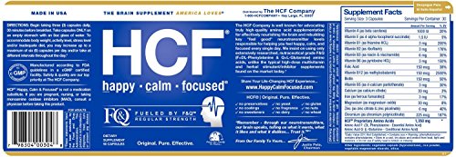 What You Get? - The one month supply of HCF Happy, Calm & Focused brain supplement (fueled by F&Q amino acids & 15+ pure & effective neuro-nutrients) contains 90 easy to swallow vegetable capsules.