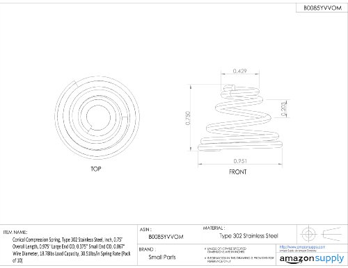 Conical Compression Spring, Type 302 Stainless Steel, Inch, 0.75" Overall Length, 0.975" Large End OD, 0.375" Small End OD, 0.067" Wire Diameter, 18.78lbs Load Capacity, 30.51lbs/in Spring Rate (Pack of 10)