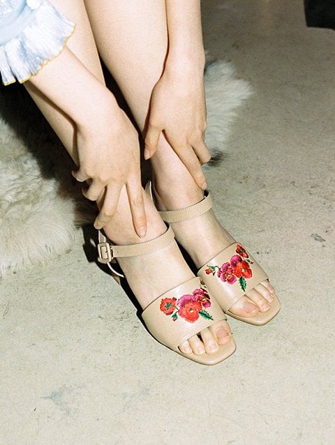 디토레(DITOLE) 디토레 팬지자수 샌들- 베이지