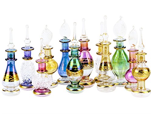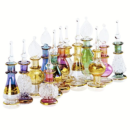 Egyptian Perfume Bottles Wholesale Set Of 12 Size 2” (5 cm) mouth-blown with handmade golden Egyptian decoration for Perfumes & Essential Oils by NileCart