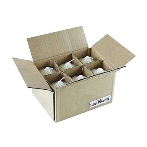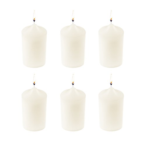 Each candle measures 2" wide x 3" inches tall. Packaged in a set of 6. With its drip less and smokeless wax feature, these unscented candles burn cleanly. Lead-free cotton wicks make this a safe candle for any home!