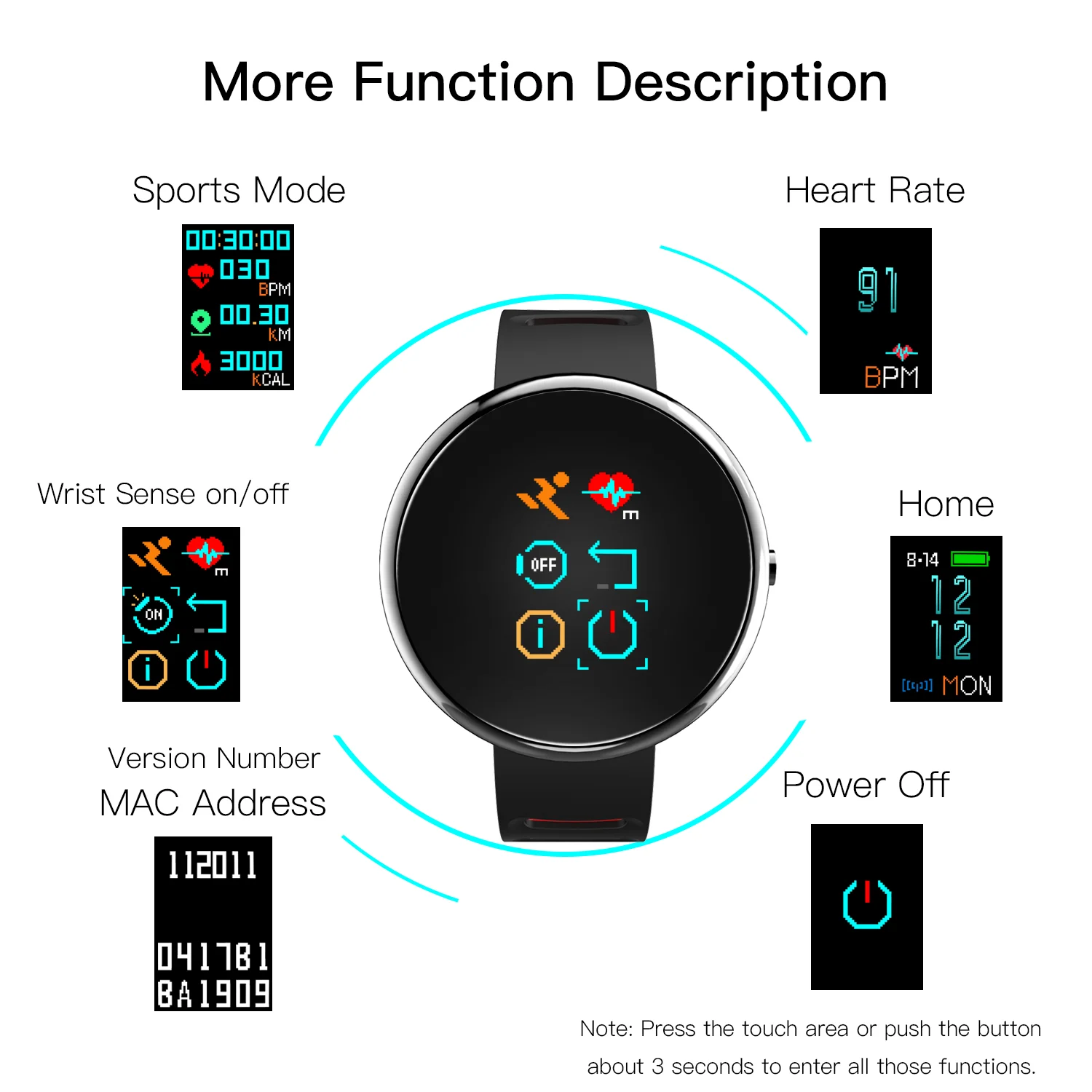 Function:Passometer,Fitness Tracker,Sleep Tracker,Mood Tracker,Message Reminder,Call Reminder,Answer Call,Remote Control,Push Message,Alarm Clock,World Time,Permanent Calendar,Week,Month,Heart Rate Tracker,Calendar,Calculators