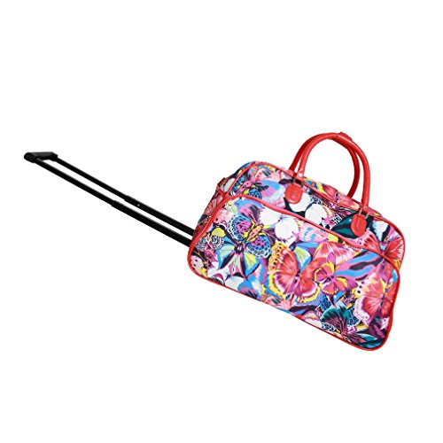 Studio : S E Publisher : S E Product Description Have a safe travel with this all new colorful garden butterflies themed duffel suitcase. This can carry loads of your items safely to your destination since it's durable. A great item to buy. Dimension: 12 inches high x 11 inches wide x 22 inches long. Features: Foldable, Rolling, Fashion, Lightweight, Softside and Durable | Materials: Polyester 0