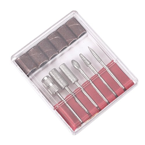 Pixnor 6pcs Manicure Pedicure Diamond Nail Bits Set with Sanding Bands for Electric Nail FileDrill