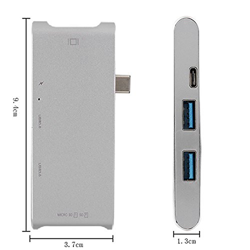 USB C Hub, SUPVIN USB Type C Adapter 3.1 with Type C Charging Port, 4K HDMI Output, Card Reader, 2 USB 3.0 Ports for MacBook Pro 2015/2016, Google Chromebook 2016 and more USB C Devices (Space Grey)