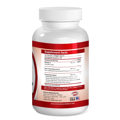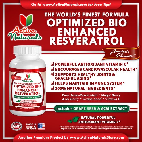 - Feature : #1 100% Pure, Natural & Herbal Bio Enhanced Resveratrol Supplement ~ 90 capsules per bottle ~ 90-Day supply with 1 capsule per day / All Natural Herbal Powerful Antioxidant Formula with pure trans resveratrol, Marqui Berry, Acai Berry, Grape Seed, Vitamin C and Other Natural Ingredients to Support Immune System Naturally / Highest Quality Herbal, Non-Addictive Resveratrol Vitamin and Mineral Supplement which Promotes the Ultimate Defense Against the Environmental and Age-related Factors ~ Made in USA in an FDA approved facility and under strict GMP standards / Our Comprehensive Formula Contains Grape Seed Extract Which is Standardized to 95% Polyphenols for Powerful Antioxidant and Superior Cardiovascular Protection / Promotes Optimal Health Without Any Side Effects ~ Take Nature's Intended Dose