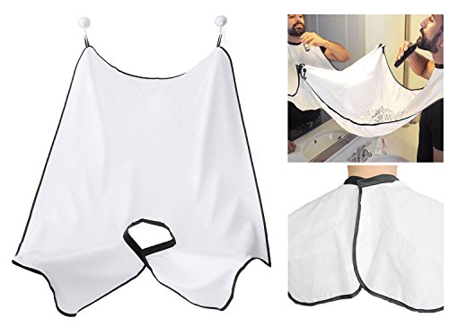 Hooleep Beard Bib - Hair Clippings Catcher Grooming Cape Apron, Beard Cape for Shaving, White