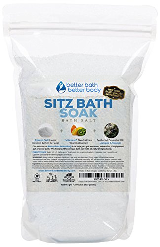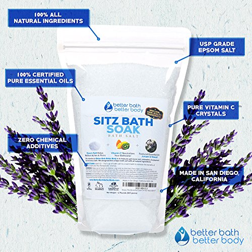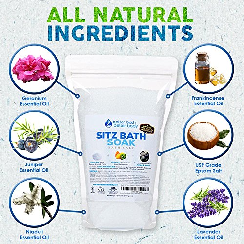 Sitz Bath Soak 32oz (2-Lbs) Epsom Salt With Niaouli, Geranium, Lavender, Frankincense, & Juniper Essential Oils & Vitamin C Crystals -...