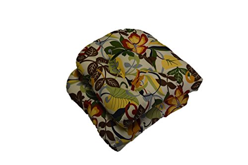 -. Title : Coventry Tropical Floral - White Red Brown Blue Green Yellow Floral P.R.Int Tufted Seat Chair Cushions - Indoor Outdoor