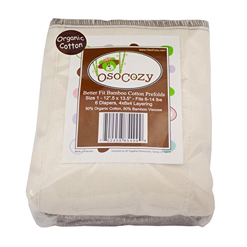 -. Title : Osocozy Bamboo Organic Cotton Prefolds - 6 Pack