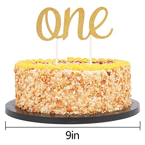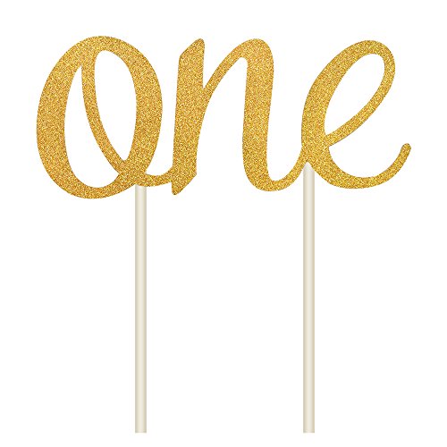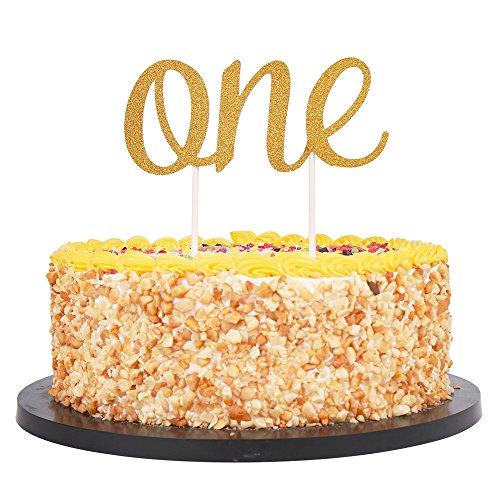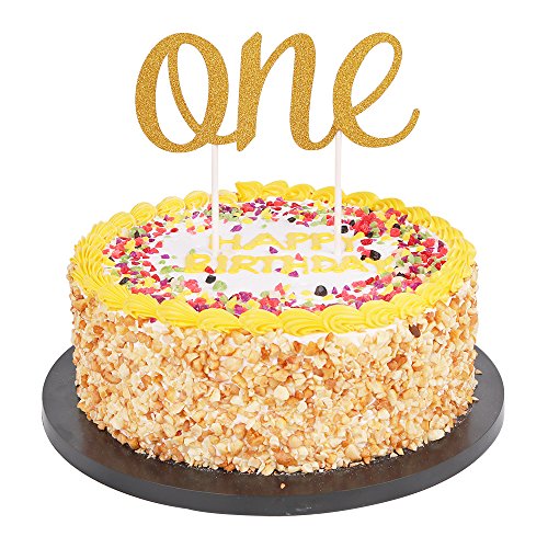 QIYNAO Gold Glitter ONE Birthday Cake Topper,1st First Birthday Party Decoration Supplies