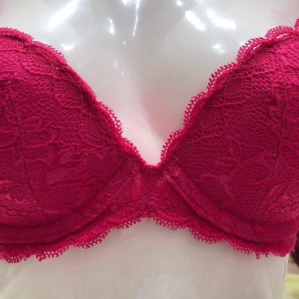 브라는 핑크 컬러의 드리밍 레이스 자수인 3/4컵 디자인 입니다.