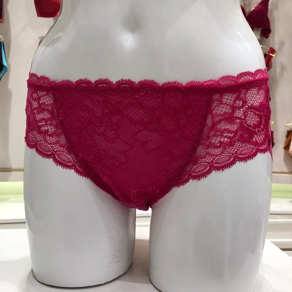 팬티는 핑크컬러에 브라와 같은 레이스 자수가 있으며