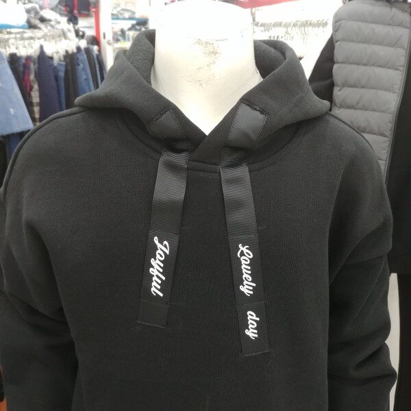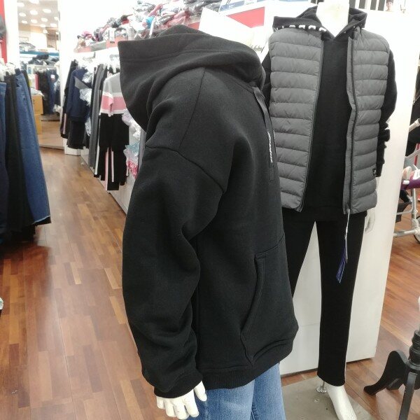 후드티 끈 디자인이 포인트입니다.블랙의 기본 디자인이 좋습니다.남녀공용입니다.기모가 살짝 있는 겨울 후드 티셔츠입니다.