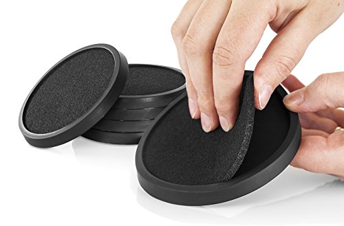 Silicone Drink Coasters with Absorbent Soft Felt Insert Set of 6 (Black) by Comfortena - Unique New Design Two in One Coaster