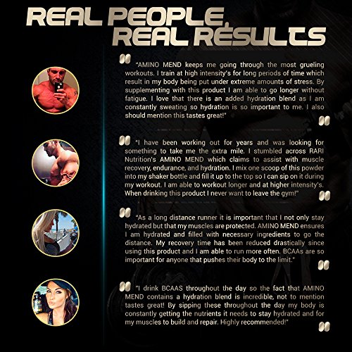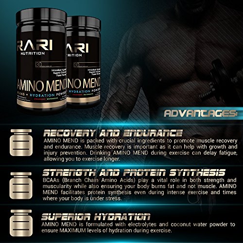 -. Feature : RECOVERY AND ENDURANCE - AMINO MEND is packed with crucial ingredients to promote muscle recovery and endurance. Muscle recovery is important as it can help with growth and injury prevention. Drinking AMINO MEND during exercise can delay fatigue, allowing you to exercise longer. / SUPERIOR HYDRATION - AMINO MEND is formulated with electrolytes and coconut water powder to ensure MAXIMUM levels of hydration during exercise. / STRENGTH AND PROTEIN SYNTHESIS - BCAAs (Branch Chain Amino Acids) play a vital role in both strength and muscularity while also ensuring your body burns fat and not muscle. AMINO MEND facilitates protein synthesis even during intense exercise and times where your body is under stress. / Good Manufacturing Process (GMP) LAB CERTIFIED - Our labs are GMP certified for safety and all our ingredients are tested for purity. The GMP certification is enforced by the U.S. F.D.A. so you can be completely confident in the quality and safety of the product. / 100% MONEY-BACK-GUARANTEE - We are so confident in our products that if for any reason you are not completely satisfied with your results, we will refund your purchase 100%!