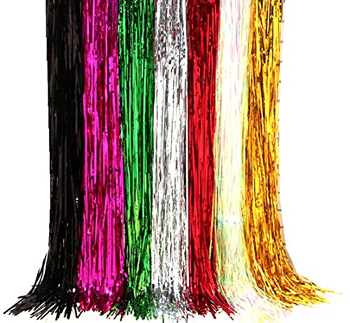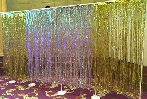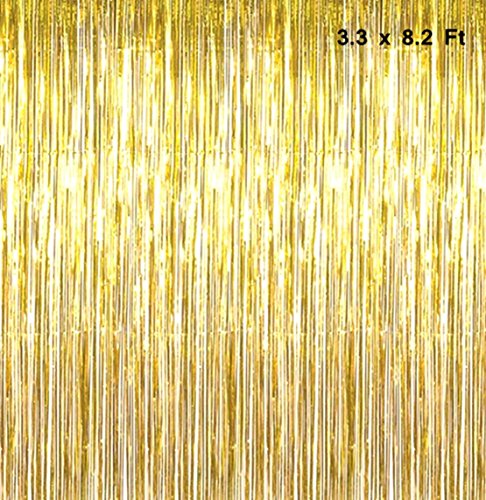 Elecrainbow Metallic Tinsel Foil Fringe Curtains 3.3 ft x 8.2 ft for Party Photo Backdrop Wedding Decor (Gold, 1 Pack)