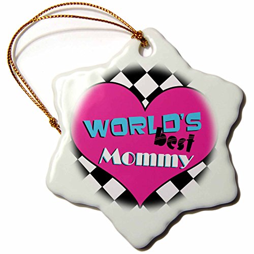 3dRose orn_10845_1 Worlds Best Mommy Porcelain Snowflake Ornament, 3-Inch