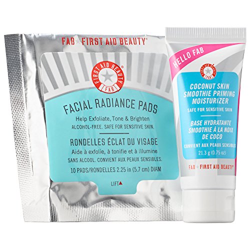 If you want to know more... Pick up the perfect on-the-go duo to get exfoliated, primed skin for a party-ready complexion. Facial Radiance Pads contain lactic and salicylic acid exfoliators to provide a smooth canvas for flawless makeup application. Cucumber and Indian gooseberry help tone, while lemon peel and licorice root leave the complexion looking bright and glowing. Hello FAB Coconut Skin Smoothie Priming Moisturizer is a unique superfood-powered, oil-free moisturizer and makeup-gripping primer in one that brightens, smooths, and visibly blurs pores and imperfections.Feature