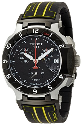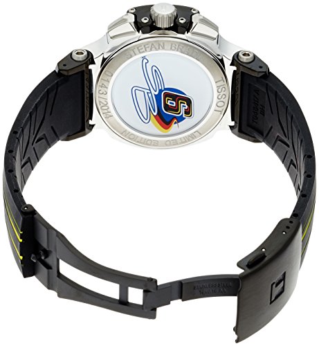 -. Feature : Tissot produces a versatile range of high-end timepieces at attractive prices / Water resistant watch perfect for water enthusiasts of any kind / Features both a tachymeter and an ever popular chronograph, or precision stopwatch, for race enthusiasts / Incredible sporty design, including bright yellow and red accents, makes this watch unforgettable / Swiss made and Swiss quartz movement for long-lasting accuracy, losing only a few seconds per month