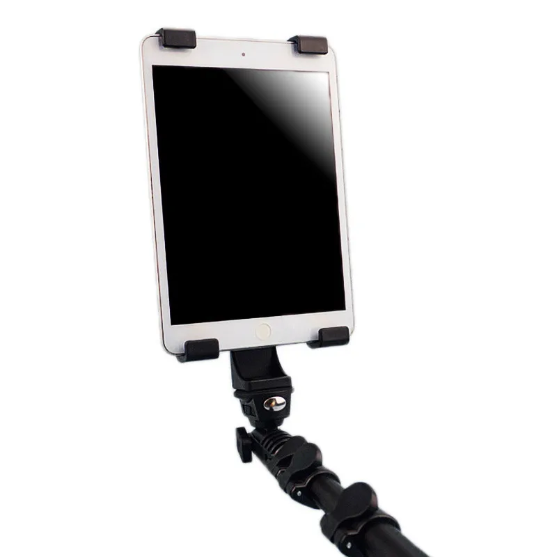 Mount your tablet to a Selfie Stick, or any tripod with standard 1/4