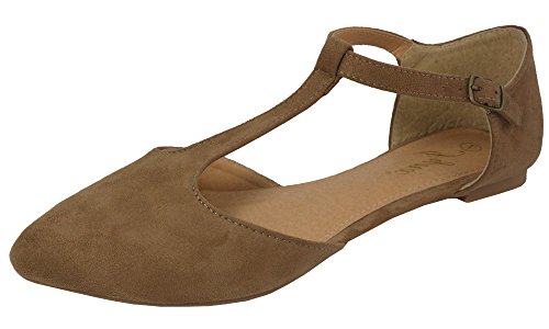 -. Binding : Apparel -. Brand : Jynx -. Department : womens -. Feature : UNIQUE DETAILS: T-strap detailing across foot with pointed toe & open sides / COMFY: .5" flat heel is perfect for all day wear / ADJUSTABLE FIT: Buckle closure at ankle provides a customized & secure fit / VEGAN FRIENDLY: Soft faux suede throughout / Imported -. ProductGroup : Shoes -. ProductTypeName : SHOES -. Title : Jynx Women's Mary Jane T-Strap Pointed Toe Ballet Flat
