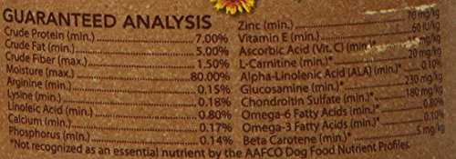 • Whole brown rice, rolled oats, flaxseed and natural sunflower oil, which are all rich in essential fatty acids for radiant skin and a shiny coat