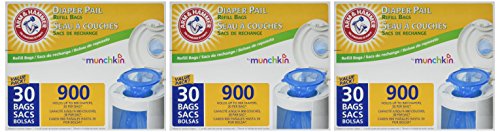 MUNCHKIN ALL NEW MEGA PACK ARM & HAMMER DIAPER PAIL REFILL BAGS -90 BAGS