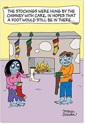 B1189 Box Set of 12 Zombie Stockings Funny Christmas Paper Cards with Envelopes