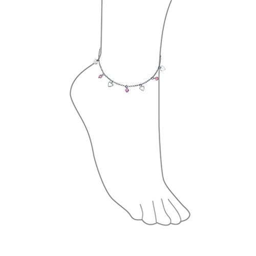 Lusciously feminine, you will be simply enchanted by this .925 silver ankle bracelet. Featuring an alternating, open heart motif and radiant pink crystal design, it makes a darling gift idea for Valentine's day and a fun, girly accessory.