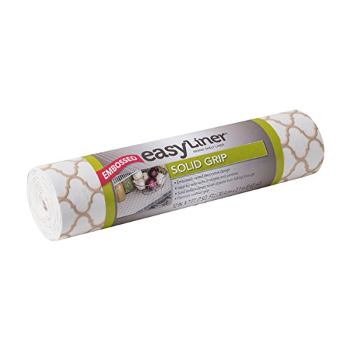 Duck Brand Embossed Solid Grip Easy Liner Shelf Liner, Taupe Quatrefoil, 12 Inches x 7 Feet (285360)