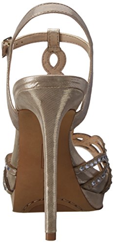 Product DescriptionMetallic sandal with a wrapped platform and wedge, adjustable buckle, light texture0