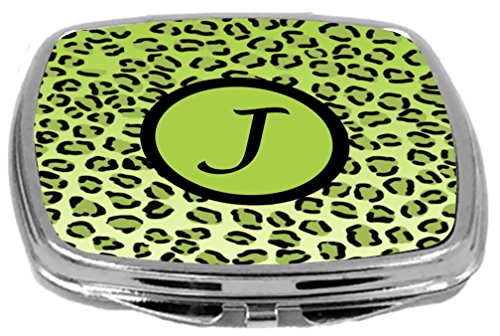 Rikki Knight Compact Mirror, Letter j Initial Lime Green Leopard Print