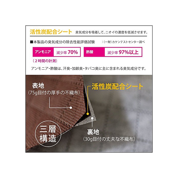 ★냄새제거 효과:땀이나 아저씨 냄새,담배의 냄새의 제거에 효과적이다「활성탄 씨트」를 내장