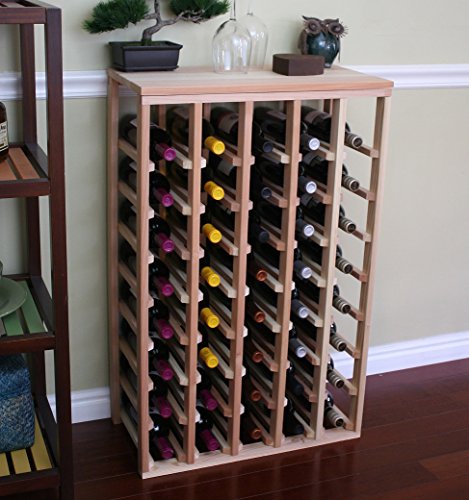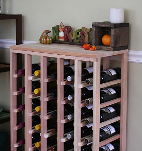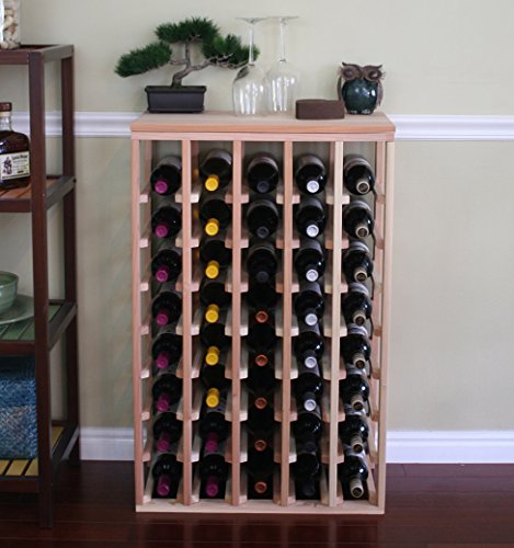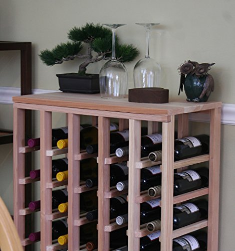 - Feature : One full-depth, 40 bottle table redwood wine rack - 12" (d) x 23.0625" (w) x 36" (h) / 12" depth conceals the entire wine bottle beautifully, fits all 750ml wine bottles. / Hand sanded and smoothed for a pleasant touch. Our wine racks are sanded by hand to a smooth and appealing texture. / Angled bottle supports, no overhanging top. Sturdy, stackable! / Some assembly (just a screwdriver) is required. No nail gun, toxic glue, drilling or clamping needed!