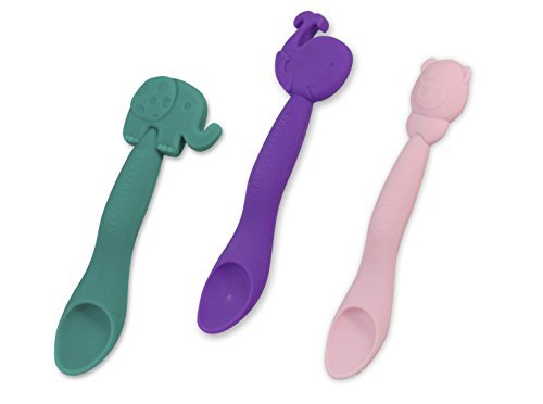 Our 3 Pack of spoons, utilizing the easy-grip handle, makes feeding easier for adults, while the soft, brightly coloured silicone is perfect for little hands and gentle on gums.